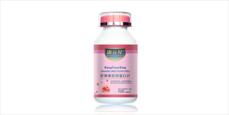 【產(chǎn)品名稱】康元星牌蝦青素膠原蛋白片(運(yùn)動后恢復(fù)類)